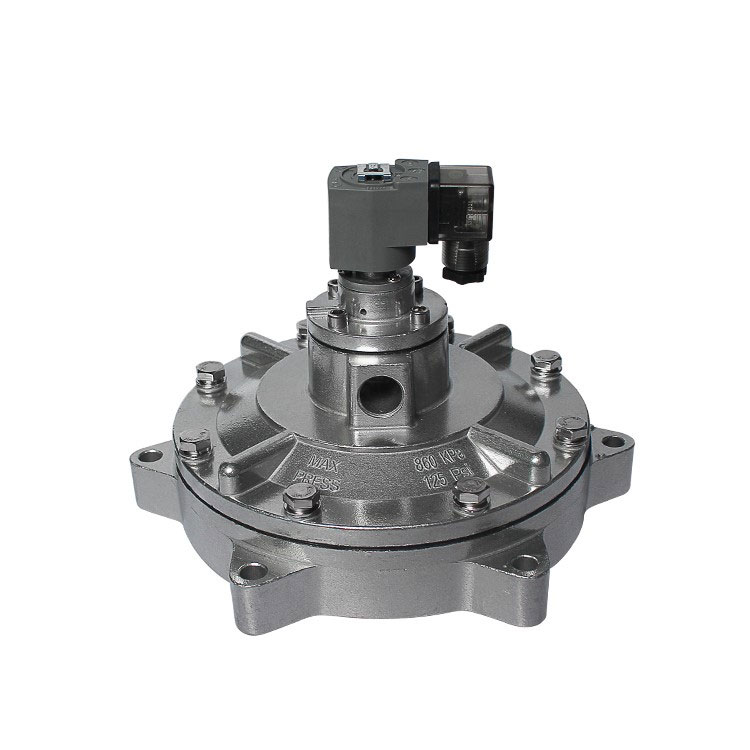 Ciri-cirinya adalah pipa saluran masuk dan keluar udara katup sudut kanan berada pada sudut 90°. Badan katup dan kap mesin die-cast menggunakan bahan paduan aluminium. Setelah perawatan permukaan, mereka menunjukkan ketahanan korosi yang sangat baik. Diafragma dan paking penyegel diproduksi menggunakan proses komposit vulkanisasi. Bahan baku kepala pilot elektromagnetik terdiri dari bahan magnet berefisiensi tinggi dan bahan pelindung magnet baja tahan karat. Komponen penting seperti pegas dan pengencang terbuat dari baja tahan karat. Metode penyambungan: Pipa distributor udara (tangki udara) dan pipa sembur pengumpul debu masing-masing dimasukkan ke dalam saluran masuk dan keluar katup, disegel dengan mur kompresi di kedua ujungnya.